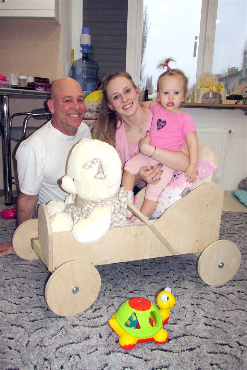 - Дело в том, что рабочую зону кухни папа делал сам своими руками. И стол выпилил из этой же толстой фанеры. Он делал стол, когда я гуляла с малышкой на улице. Думаю, что же он не звонит и не звонит мне? Прихожу домой, а он весь на эмоциях, на таком адреналине! Оказывается, у него возникла идея сделать Джессике сюрприз. А я не пойму, что это за детали, какие-то круги. «Это для моей дочечки будет машина» - говорит. И собрал ее, пока мы с ней днем спали. Осталось только покрасить ее. У меня есть фото и видео, как Джес обрадовалась этой игрушке. Она устраивает такие гонки с этой машиной! Вот, смотрите, угол стенки отбит – здесь случилось первое ДТП.